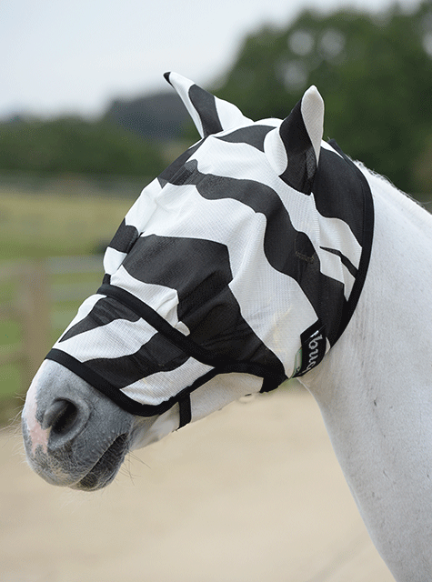 Buzz-Off Zebra Fly Mask can be used with Buzz-Off rugs or on its own and provides excellent protection.