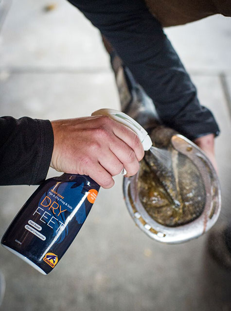 When hooves are soaked in water and mud, they will soften. The natural protective oils will then be stripped away making them more susceptible to invading organisms. Cavalor PodoGuard acts as an antibacterial barrier to keep moisture and microorganisms out.